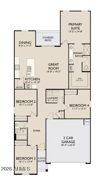 Welcome to this thoughtfully designed 4-bedroom, 2-bathroom home offering 1,797 square feet of open concept living space. Contemporary design details shine throughout, including 9 foot ceiling height, 42'' white shaker cabinets, and quartz countertops. The home is finished with wood-look 7x22 plank tile flooring throughout and carpet in the bedrooms, combining durability with the warmth of natural wood tones. The generously sized bedrooms offer ample storage and flexibility to adapt to any lifestyle. Blending comfort, function, and timeless design, this home is the perfect canvas for modern living. This home also includes interior blinds and all appliances making it move in ready! Located in North Copper Canyon with resort-style amenities and easy access to the 303.